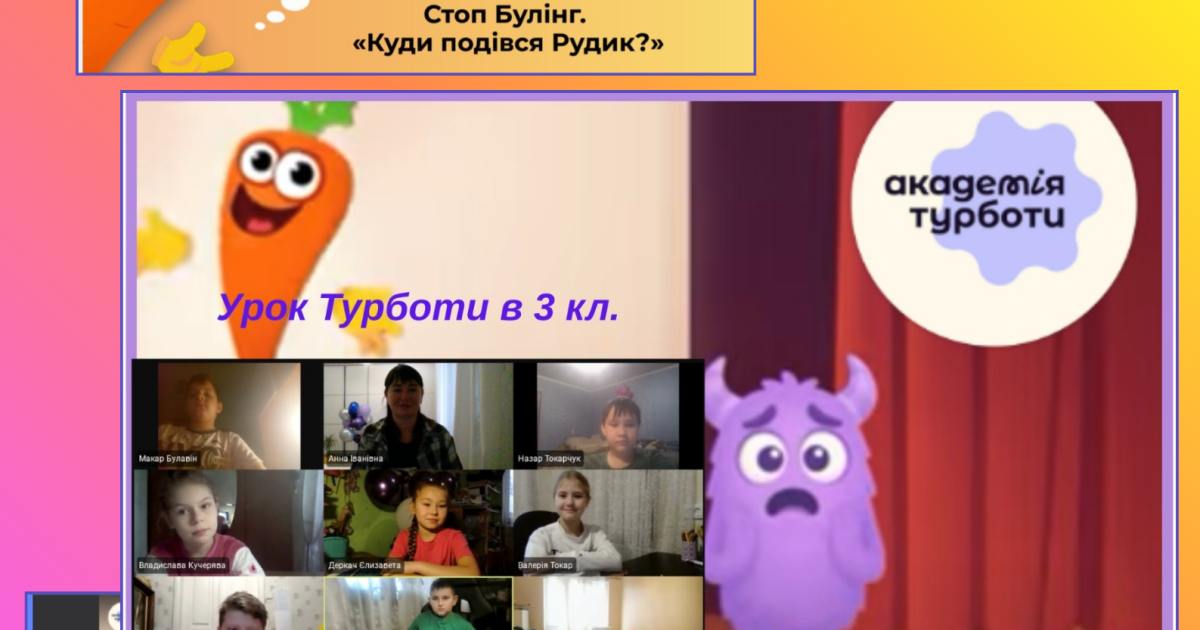 Третьокласники долучилися до всеукраїнського проєкту "Академія турботи" та прийняли участь у проведенні Уроку Турботи «Стоп булінг. Куди подівся Рудик?», під час якого разом із героями навчального мультфільму вчилися розпізнавати прояви булінгу, говорити про свої емоції та підтримувати одне одного.